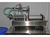 4、液體灌裝機:是根據包裝容積不同的一種自動灌裝工具,84消毒液采用耐腐蝕灌裝機,不能使用傳統不銹鋼灌裝機,若灌裝非含氯消毒劑采用灌裝機即可;