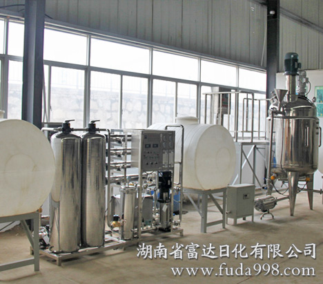 反滲透水處理設備,等離子乳化反應釜,機械或PLC控制系統,水自動計量器,原水罐,純水罐,成品罐,乳化泵,工作平臺,液體灌裝機,空壓機